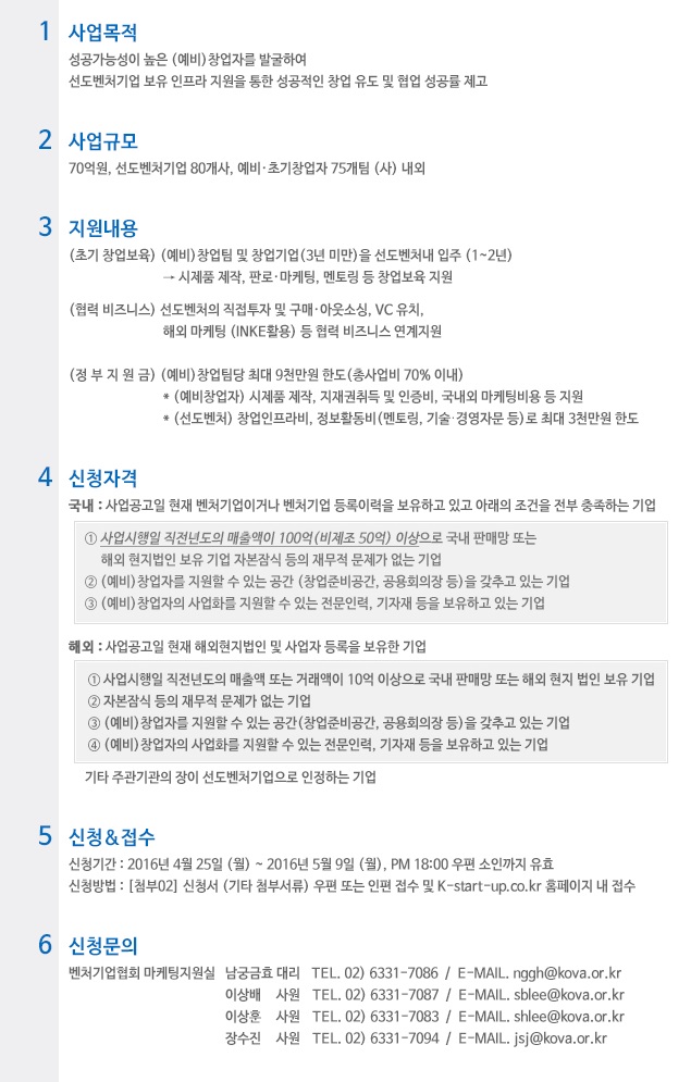 | 제목 | 2016 선도벤처기업 모집 | ||